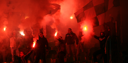 Местната полиция допусна двете агитки да вкарат пиротехника на стадиона и така атмосферата стана далеч по-колоритна и подобаваща за подобен градски сблъсък.